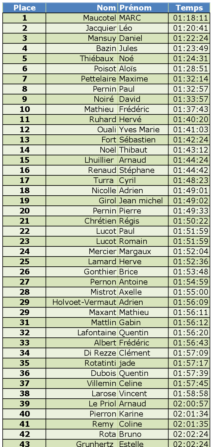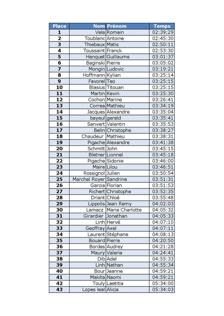 Marbitrail 30 km – Seconde édition – Ordre d’arrivée